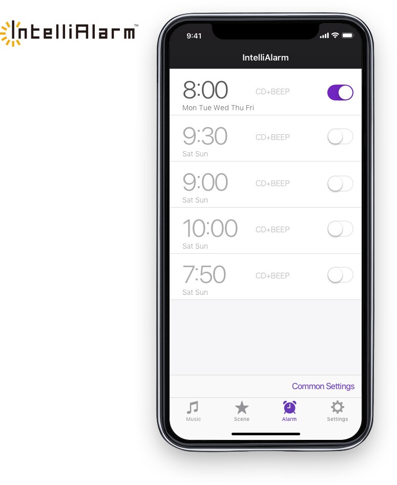 內建的鬧鈴功能,可從智慧型手機輕鬆設定控制,可將您溫柔喚醒。例如,只需將「收音機」設定為鬧鈴來源,早晨醒來就可以聆聽您最喜歡的廣播電台。