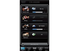 The AV Controller app 應用程式可便利的控制多個區域的各種功能。簡易區域圖示顯示,可控制每區的電源(開/關),輸入源選擇,以及音量大小調整。另外,當宴會模式啟動時,也會顯示在應用程式中並且可以在此模式中同時調整音量大小。