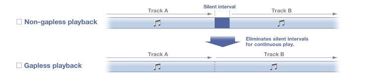許多現場演奏以及古典樂來源專輯在曲目之間是沒有間隙的。Gapless播放確保在音訊檔案之間沒有暫停,讓播放不受到阻擾,就像它原始想呈現的樣子。