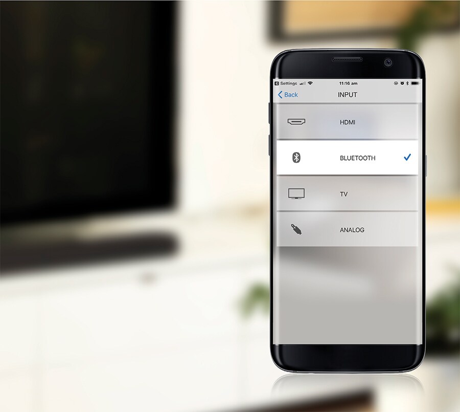 Select the content you want to play, fine-tune your sound as well as turn the system on and off - all with convenient fingertip control from your smartphone.