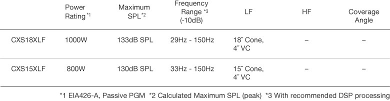 CXS XLF 系列由兩個無源超低音揚聲器組成:CXS18XLF(18 吋)和 CXS15XLF(15 吋),可以將系統的低頻擴充到起始 29Hz,以展現顫動的低頻能力。Neutrik speakON NL4MP 連接器提供安全、可靠和靈活的連接。配備用於多個超低音揚聲器的輸入/並行的兩個連接器,以及一個獨特的輸出連接器,可彈性設定為全音域 CZR 擴音喇叭或心形模式設定。可以透過單一 4 極 speakON 電纜進行更簡易的連接。