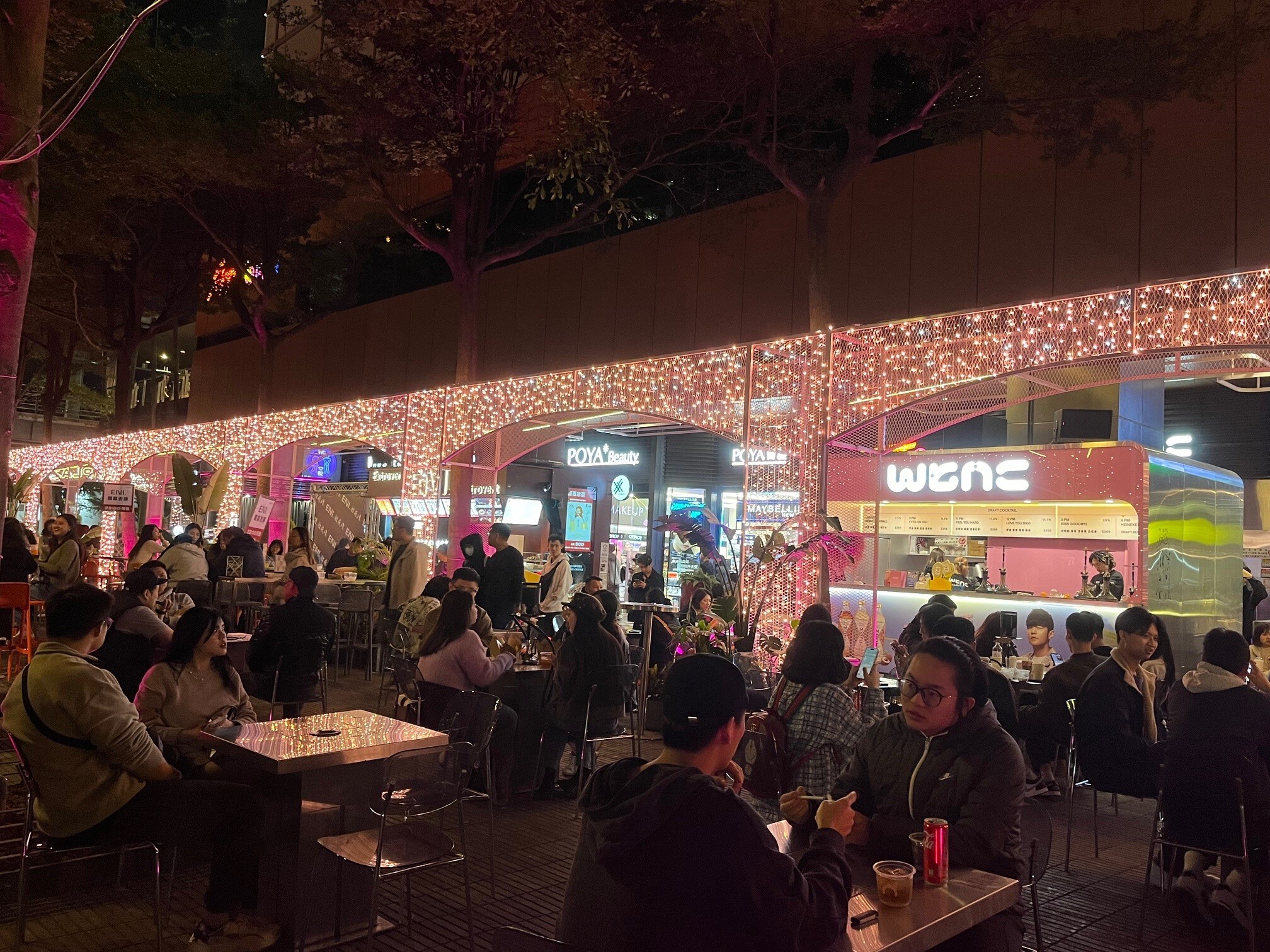 信義商圈是台北夜生活的心臟地帶,以其潮流時尚的氛圍和各種特色酒吧吸引著無數年輕人和夜貓子。WTNC 露天酒吧正是其中的亮點之一,這裡融合了都市美學與舒適的戶外空間,成為朋友聚會、放鬆心情的理想場所。