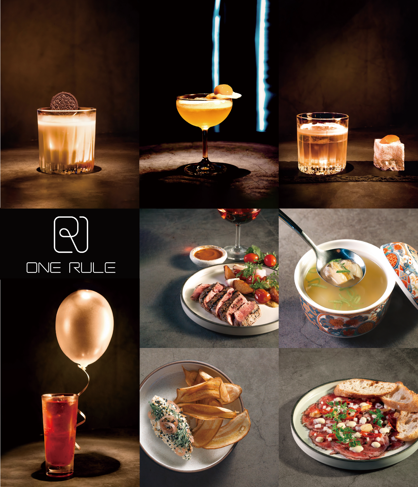 ONE RULE禮聘加拿大籍國際主廚Greg設計獨家菜單,其料理之路遍跡多國,因緣際會落腳台灣後,將最拿手的法式風格融入台灣在地料理,推出多樣化新式創意美食。