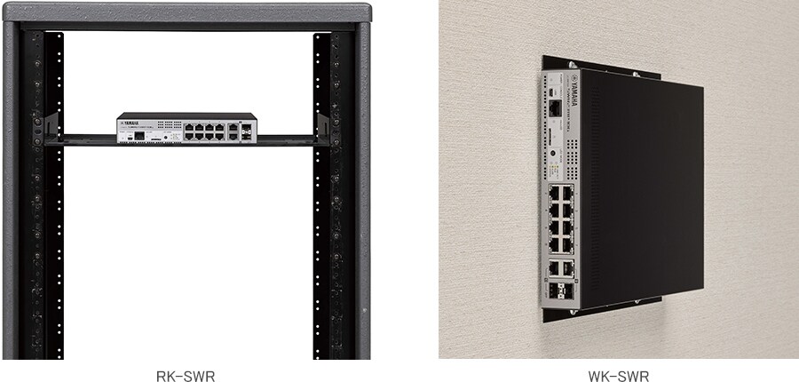 單獨銷售的 "RK-SWR" 機架安裝附件可應用安裝在 19 英吋機架中,您可以使用 "WK-SWR" 壁掛式配件將裝置安裝在牆壁上(請勿將 LAN 連接端方向朝上或朝下安裝)或高度 2 公尺或少於 2 公尺的天花板,進一步擴充您所選擇安裝的位置。