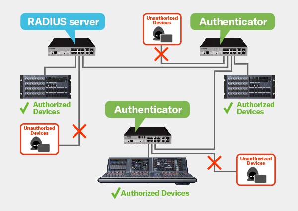 - 將一台交換機設定為 RADIUS 伺服器,並將其連結其他交換機,即可有效阻隔未經授權之網路訪問,從而提高安全性。