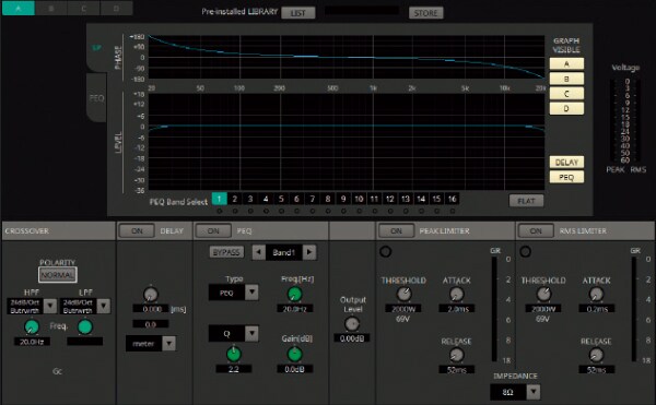 PC-D/DI 系列擴大機配備強大的板載(內建)喇叭處理器,可提供 16 頻 PEQ、延遲、峰值限制和 RMS 限制等處理,以及呈現線性相位的 FIR 濾波器**,讓使用者可完美、精確、輕鬆微調喇叭。Dante 輸出可將 Room EQ 的其他參數調整傳輸到其他擴大機,可集中調整多個擴大機聲道的 EQ。喇叭預設庫配備最佳化的 Yamaha CZR 系列和其他系列預設值,可輕鬆進行系統喇叭的完美微調。