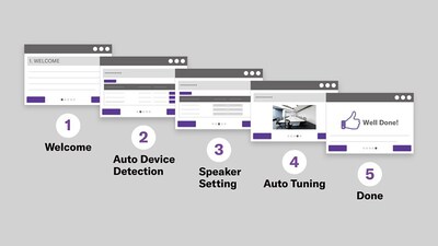 請依照網頁瀏覽器的設定精靈指示,只要點幾下,就能讓它根據系統音訊路由以及室內環境,自動進行調整。 這不但可大量減少調整時間,也不需要任何聲學知識或經驗就能輕鬆設定。