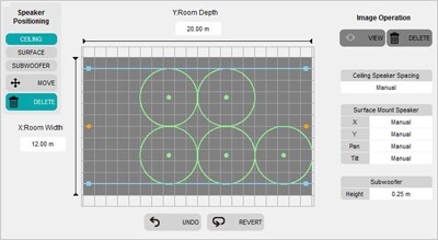 進階模式依據使用者指定的條件,以更靈活、更精密的設定,快速計算呈現最佳效果所需的喇叭數量。在此模式下,可以使用各種吸頂喇叭、壁掛喇叭和重低音喇叭。