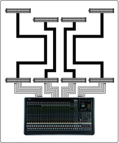 可從執行適當軟體的電腦或從允許進行音訊配置(如 CL 系列)的裝置,控制音訊佈線。