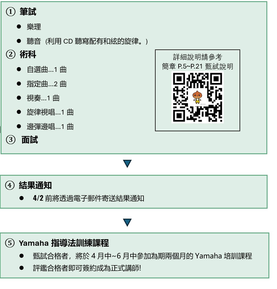 如果您個性活潑開朗,對音樂教育充滿熱誠;認同Yamaha音樂教育的理念和指導方針,嚮往在這樣的教學環境裡陪伴孩童成長;身為專業音樂工作者的同時,也兼備教育者的能力與知識,能不斷努力追求自我提升,歡迎加入 Yamaha 音樂講師的行列!