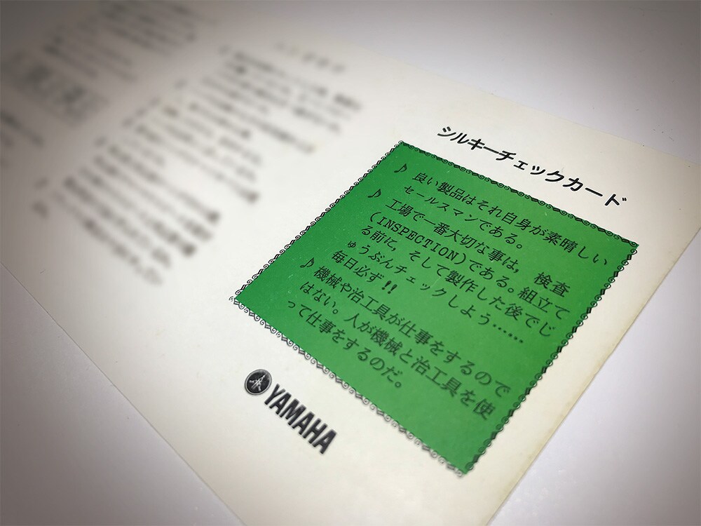 Schilke 檢查卡成為 Yamaha 銅管樂器製造的基礎。正面 寫下 Schilke 的名言:「優質的樂器是最強的推銷員。」「檢查是最重要的步驟。」和「機器不是製造樂器的主角;他們只是協助我們製造樂器。」