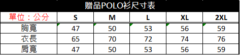 贈品衣服尺寸參考表