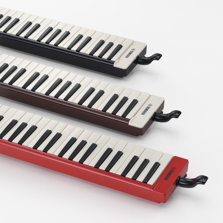 容易演奏且方便攜帶的鍵盤樂器。棕色和黑色口風琴,從低音到高音都擁有極美妙的柔美音色,而紅色口風琴的音色則是生動而鮮明。隨貨附有可攜式軟式樂器盒。