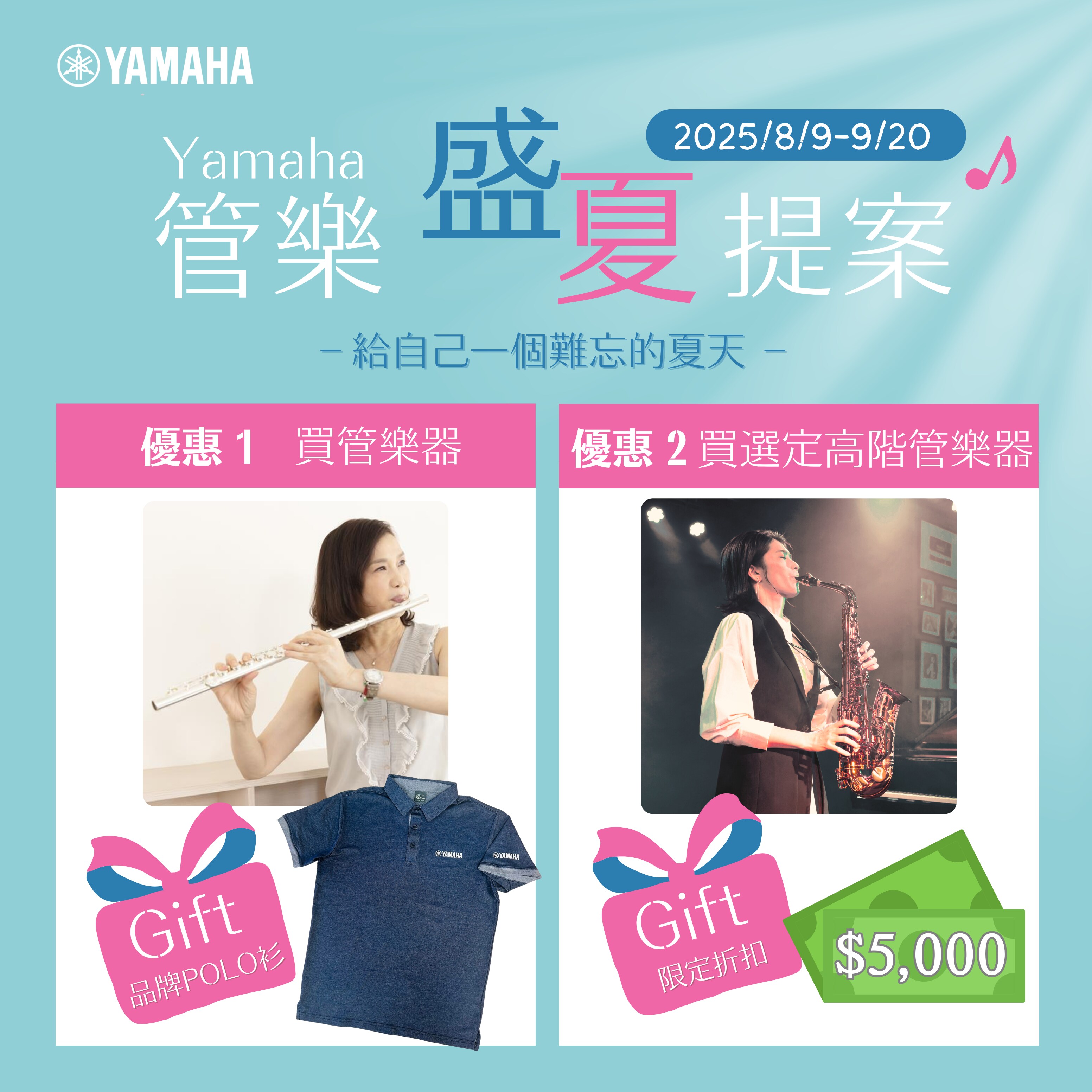 [2025 Yamaha管樂盛夏提案●讓管樂器給自己一個難忘的夏天] 限量好禮優惠送,買高階型號再加碼折扣優惠!