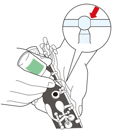 將少量的按鍵油滴到按鍵樞軸點的間隙中。按壓按鍵數次,將油平均塗開,然後使用紗布或音孔清潔劑擦拭掉過多的油。