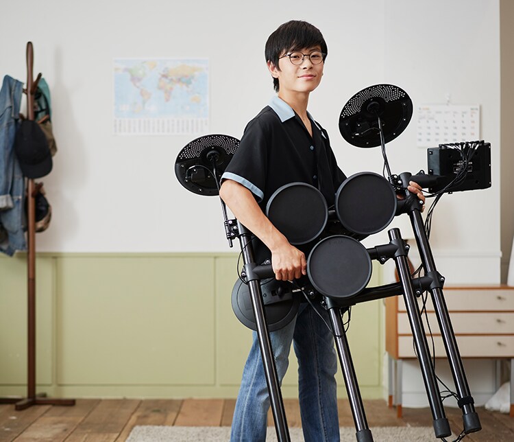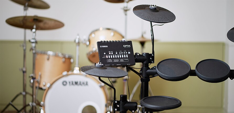 Yamaha 了解鼓的一切知識。這是我們可在不影響鼓組本質的前提下採用精巧設計的原因。您可依據需求,調整鈸、小鼓和中音鼓的位置和角度,並以正確的姿勢打鼓。DTX 配備 Yamaha 腳踏板,此乃專業鼓手的最愛,並忠實地重現鼓音的變化,包括抓鈸和鼓框。也可修正各種元件的高度,以方便任何人、甚至孩童的使用。