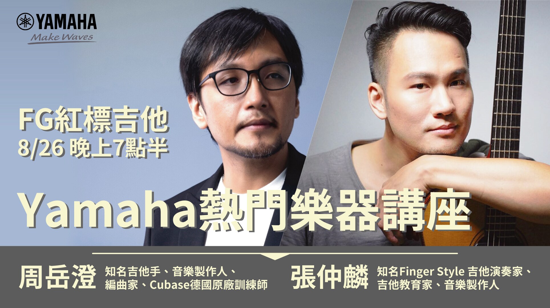 我們邀請知名吉他手周岳澄與張仲麟向您示範最火紅的FG紅標吉他! 一起來共襄盛舉吧!