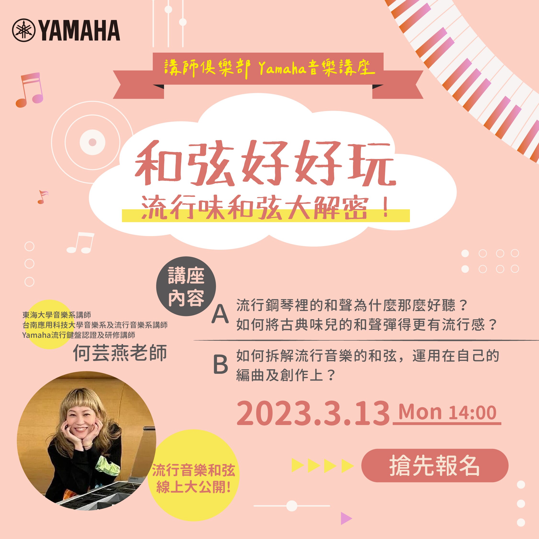<Yamaha音樂講座-鍵盤和弦好好玩>一起來了解流行味和弦!即日起開放報名!