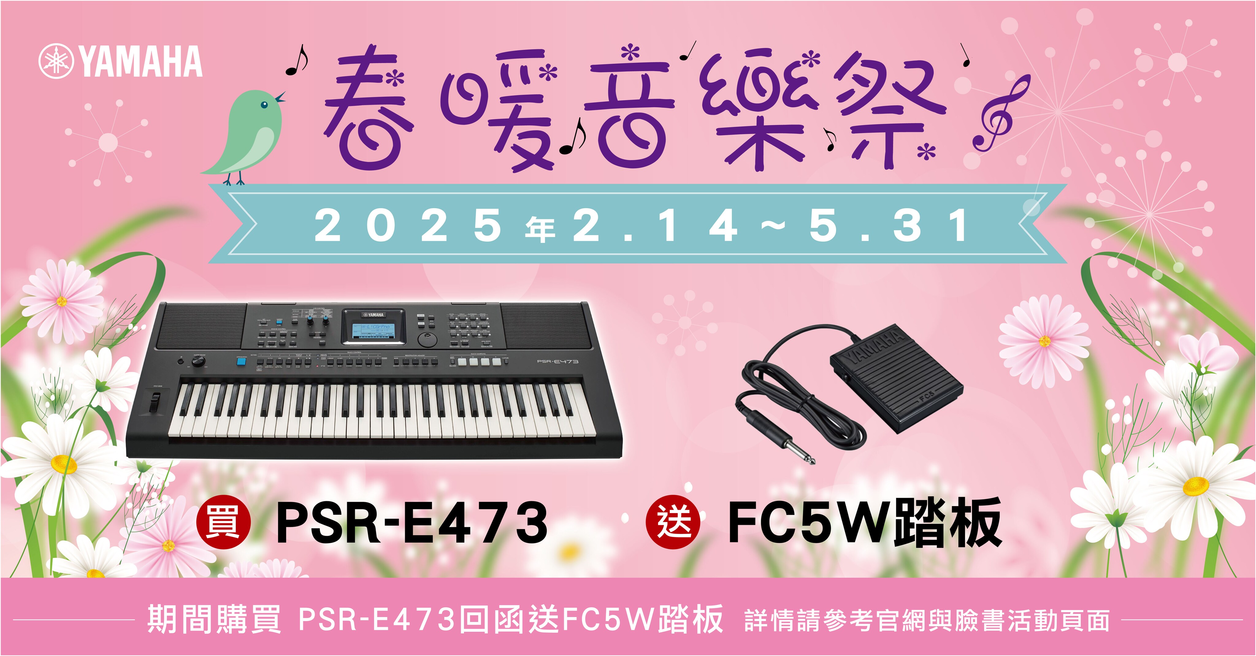 2025春暖音樂祭!買Yamaha電子琴PSR-E473和PSR-SX600就送超值贈品!