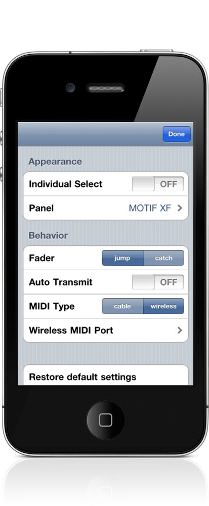 * Yamaha MOTIF XF offers you WiFi connectivity which enables wireless control.* If you use the Yamaha i-MX1 iPhone / iPad MIDI Interface, you can connect to any MIDI instrument.* In order to have the WiFi connection, you need to get an OS updater for MOTIF XF from www.yamahasynth.com and buy a compatible Wi-Fi USB adapter.* Apple and the Apple logo are trademarks of Apple Inc., registered in the U.S. and other countries. iPad, iPhone, iPod touch are trademark of Apple Inc. App Store is a service mark of Apple Inc.