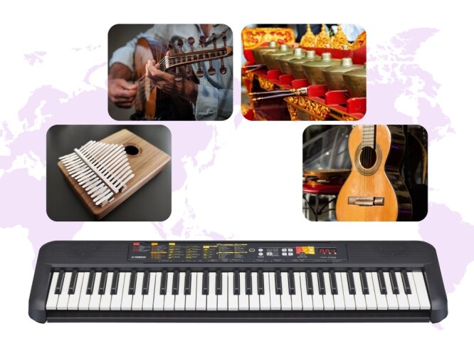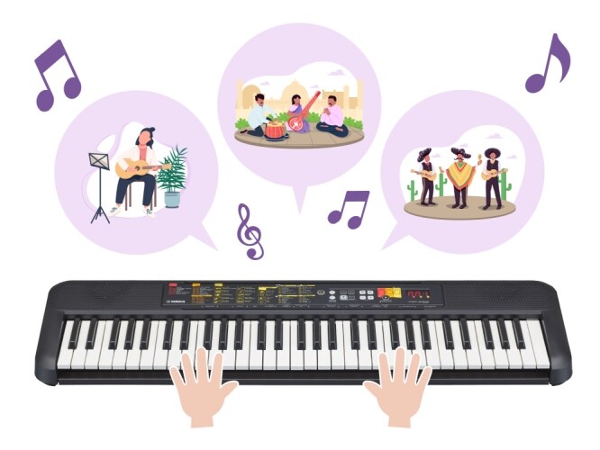 適合初學者使用的電子琴,具有特色的樂器音色和來自許多不同國家的自動伴奏。