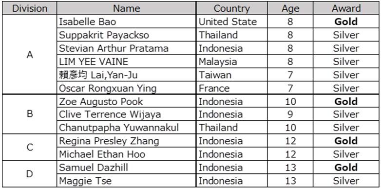 恭喜台灣代表賴彥均同學榮獲少年 A 組銀牌的殊榮,期待明年有更多 Yamaha 的學生共襄盛舉。