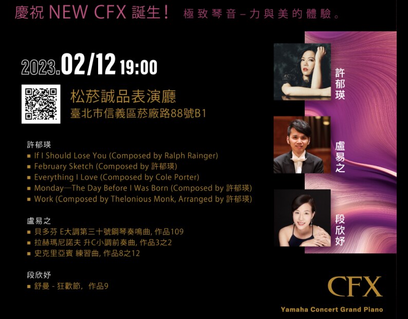 2023 Yamaha台灣鋼琴名家邀請演奏會! 慶祝New CFX誕生!