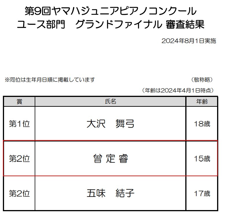 恭喜台灣代表 賴彥均 及 曾定睿 分別獲得YJPC少年組第三名及青年組第二名的獎項!