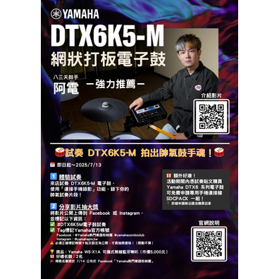 5. 活動期間憑試奏影片貼文,向以上經銷商購買Yamaha DTX6系列電子鼓,