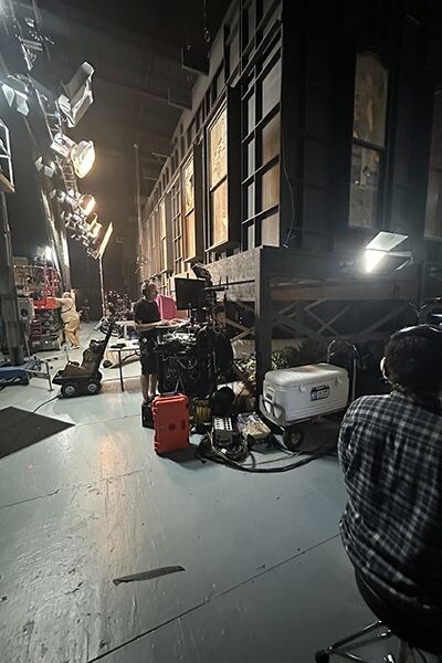 現在時間剛過早上 7 點,北卡州威爾明頓的《The Runarounds》劇組早早就開始人頭攢動。在磚牆倉庫改建的臨時俱樂部裡,群眾演員們啜飲著咖啡,攝影機在軌道上滑動,一群背著吉他的年輕演員在舞台燈光下為吉他調音。纜線蜿蜒鋪開在地板上,頭頂嗡嗡作響的燈光裝置,舞台外藏在黑色絨幕布後面的音訊和錄音工程師史考特.史坦納 (Scott Steiner),戴著耳機,正全神貫注地在移動推車前賣力工作,手指在控台上飛快移動。