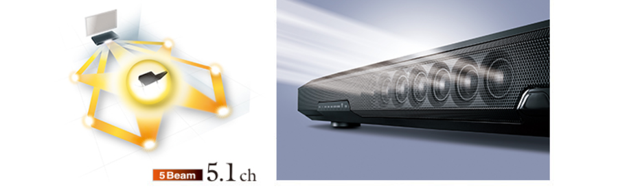 - 數位聲音投射技術搭配八個陣列揚聲器打造5.1.聲道環繞音效