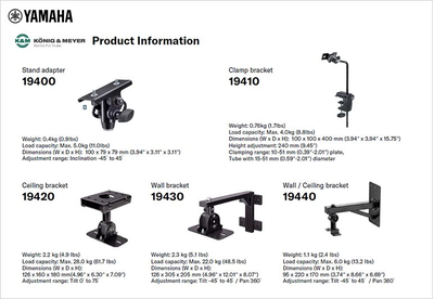 König & Meyer 於 1949 成立年,是全球領先的麥克風、喇叭和樂器支架製造商,提供一系列與 Yamaha 設備完全相容的優質、耐用的支架和支架硬體。