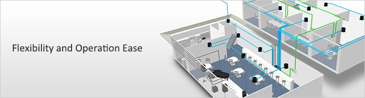 使用 MRX7-D 的兩種網路類型,可大幅降低安裝成本和時間。縮短的系統連接 YDIF 和更大型安裝的 DANTE 的組合可大幅改善設計彈性。