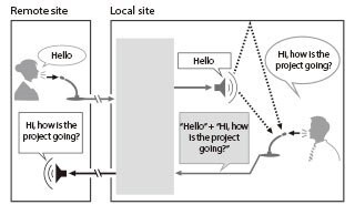 在大型會議場地,位於本地喇叭遠處的語音可由本地麥克風接收且除了本地語音外,還可傳回遠處位置。這類回音可大幅降低遠處位置對聲音的可聽度。原聲回音取消器可有效抑制這類令人不適的回音,並最大幅提升清晰度和可聽度。會比較麥克風接收的音效與喇叭發出的音效,然後進行分析。裝配自適應濾波器,抑制麥克風輸入中的喇叭輸出,避免喇叭輸出被麥克風回傳變成回音。請注意該功能的設計無法消除場地本身的反射音或殘響。